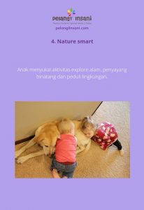 Anak menyukai aktivitas explore alam, penyayang binatang dan peduli lingkungan.