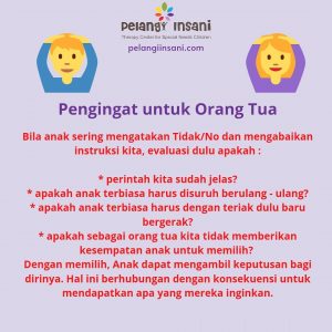 Bila anak sering mengatakan Tidak/No dan mengabaikan instruksi kita, evaluasi dulu apakah :