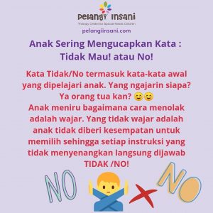 Anak meniru bagaimana cara menolak adalah wajar. Yang tidak wajar adalah anak tidak diberi kesempatan untuk memilih sehingga setiap instruksi yang tidak menyenangkan langsung dijawab TIDAK /NO!