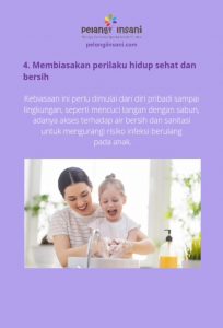 Kebiasaan ini perlu dimulai dari diri pribadi sampai lingkungan, seperti mencuci tangan dengan dabun, adanya akses terhadap air bersih dan sanitasi untuk mengurangi risiko infeksi berulang pada anak.