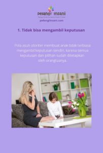 Pola asuh otoriter membuat anak tidak terbiasa mengambil keputusan sendiri, kerena keputusan dan pilihan sudah ditetapkan oleh orangtuanya.