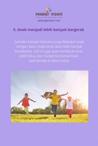 Semakin banyak interaksi yang dilakukan anak dengan alam, maka anak akan lebih banyak beraktivitas. Hal ini juga akan membuat anak lebih fokus dan mudah berkonsentrasi saat berada di dalam kelas.