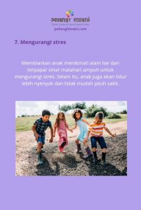 Membiarkan anak menikmati alam liar dan terpapar sinar matahari ampuh untuk mengurangi stres. Selain itu, anak juga akan tidur lebih nyenyak dan tidak mudah jatuh sakit.
