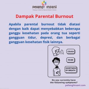 Apabila parental burnout tidak diatasi dengan baik dapat menyebabkan beberapa ganggu kesehatan pada orang tua seperti gangguan tidur, depresi, dan berbagai gangguan kesehatan fisik lainnya.