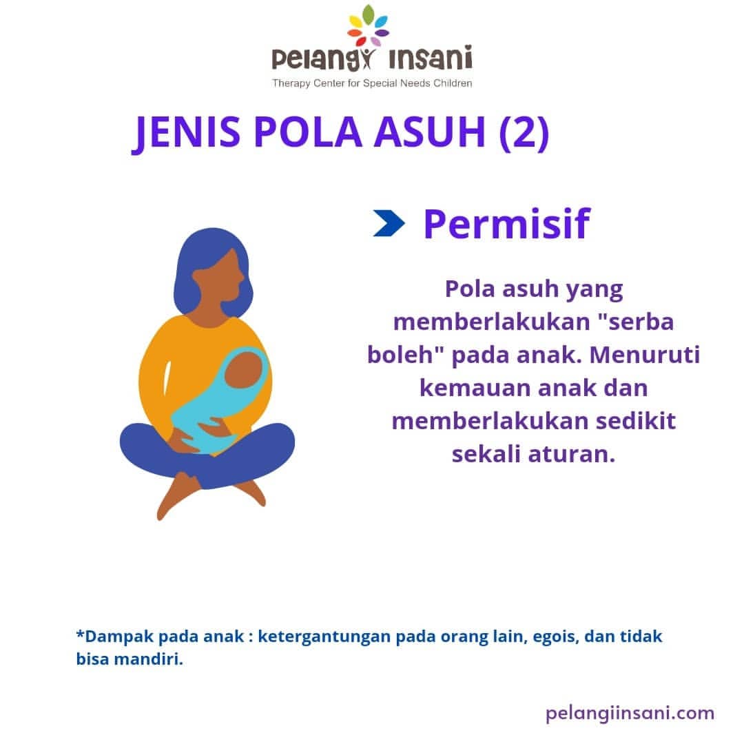 Jenis pola asuh permisif adalah jenis pola asuh yang memberlakukan serba boleh pada anak. Menurut kemauan anak dan memberlakukan sedikit sekali aturan.