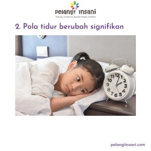 December 06,2022 By Admin 2 kids 0 Comments anakaustis, anakdidik, anakkebutuhankhusus, austis, austism, belajar, cerebralpalsy, dirumahaja, disgrafia, diskalkulia, disleksia, downsyndrome, dyscalculia, dysgraphia, dyslexsia, pelangiinsani, perkembangan anak, pusatterapi, socialdistancing, specialneed, specialneeds, tempatterapi, terapi, terapianak, terapicerebral, terapikebutuhankhusus Tanda anak perlu konsultasi ke psikolog 1.Lebih manja dari biasanya 2.Pola tidur berubah signifikan 3.Sulit fokus 4.Banyak diam dan menyendiri 5.Mudah marah pada hal sepele